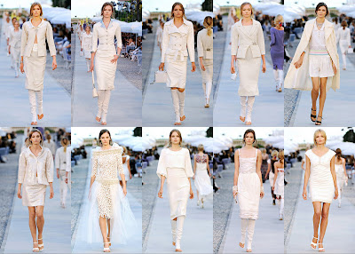 Chanel kicked off this year's Cannes festivities with their resort collection runway show: Cruise Collection "This is about the women of Cannes, women who mix bathing suits with real pearls and diamonds," Karl Lagerfeld said. "After all, you can't wear fakes into the water... It's about dressing down these very sumptuous looks, about easy elegance"
